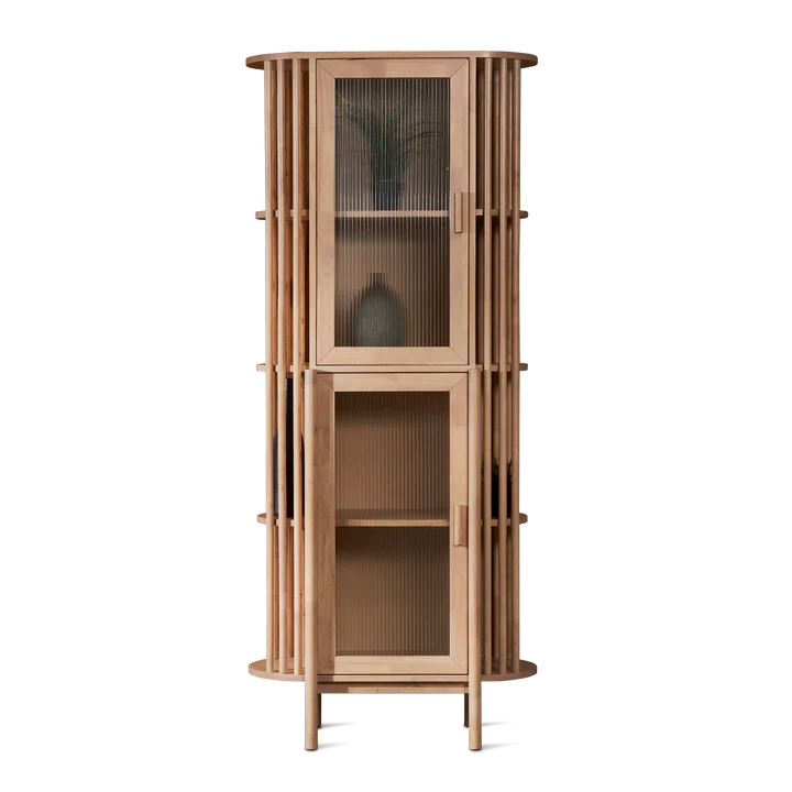 Presenting the SENSE Display Cabinet, a testament to elegance meticulously crafted from full solid rubber wood in a warm wood tone. Infused with minimalist and Japandi-inspired aesthetics, this cabinet effortlessly merges style and functionality. With two soft-close doors adorned with fluted glass, it not only offers exquisite display space but also adds a touch of sophistication to your setting. As a vital part of the SENSE series, this display cabinet seamlessly complements your interior with its serene design and versatile storage, making it a remarkable addition to living rooms, dining areas, or any space seeking both organization and refinement.